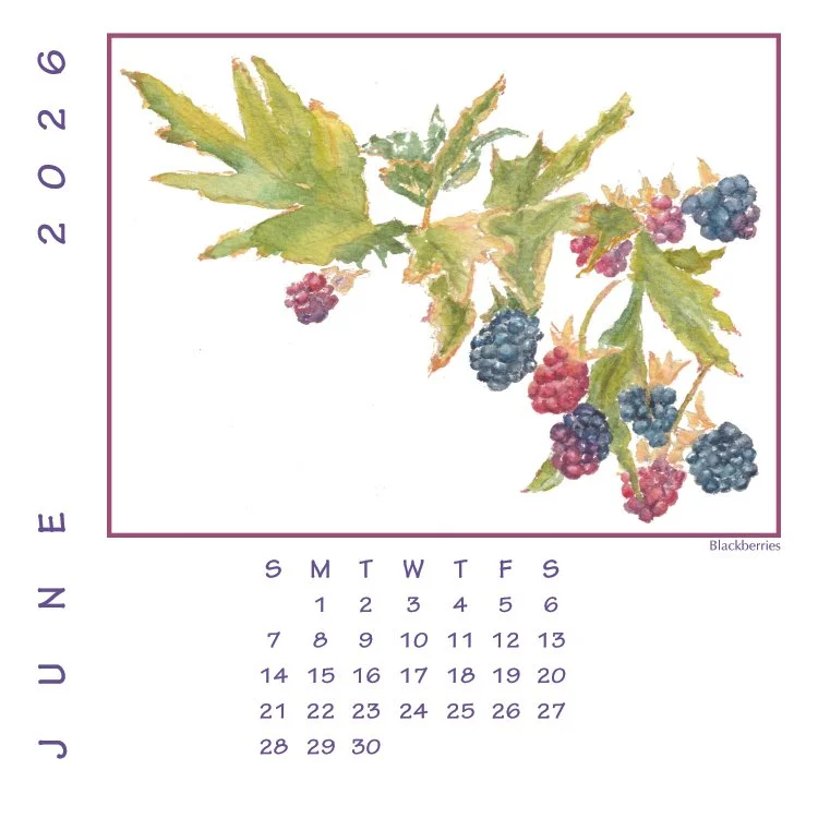 The Individual months calendar features “My Most Requested Recipes and is a collection of recipes that I’m most often asked for. The front of the calendar page is a painting that relates to the recipe and the recipes are on the back. The calendar pages measure 5” x 5”.
